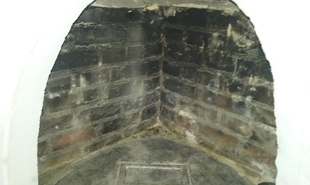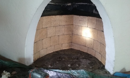 BEFORE AND AFTER. A 2016 project involving the firebox rebuild for a Stamm Home built in 1956...the photo above shows the condition before the rebuild. The second picture was taken at the beginning of the rebuild...